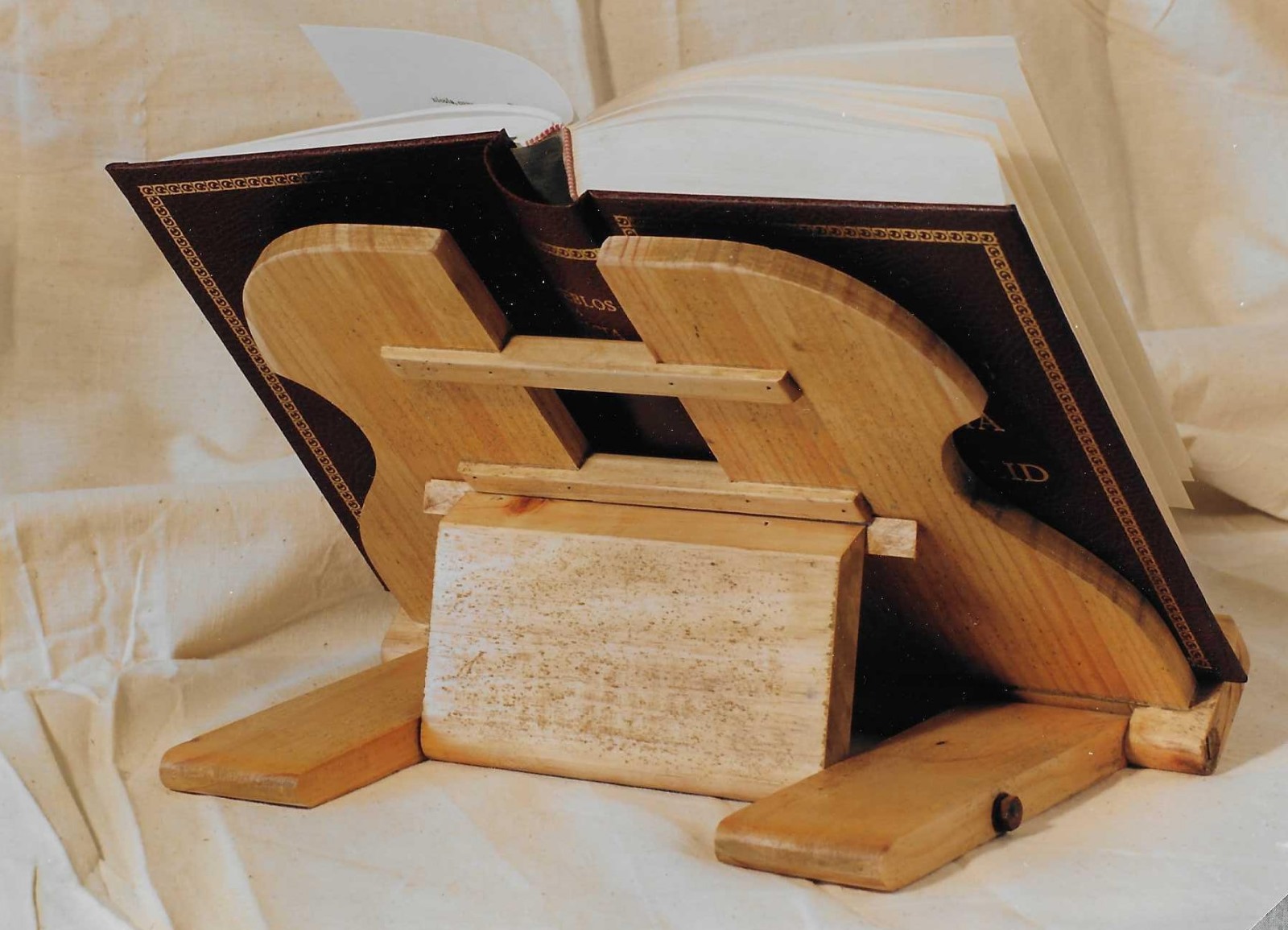 Atril plegable, madera de pino teñido y envejecido, (25x22x5 cm)