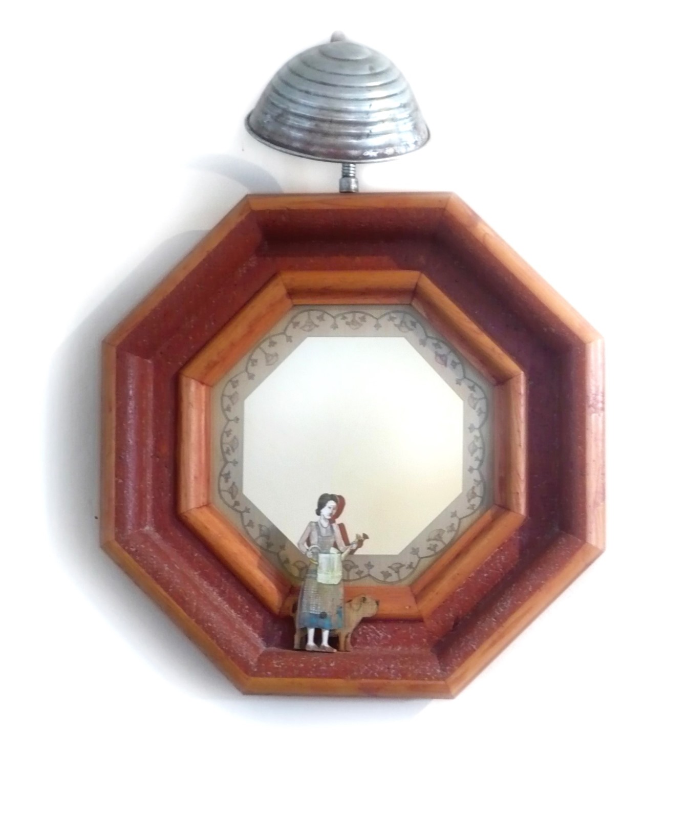 Espejo octogonal con fexo,, madera de fresno y aglomerado, teñidos y envejecidos (60x60x8 cm)